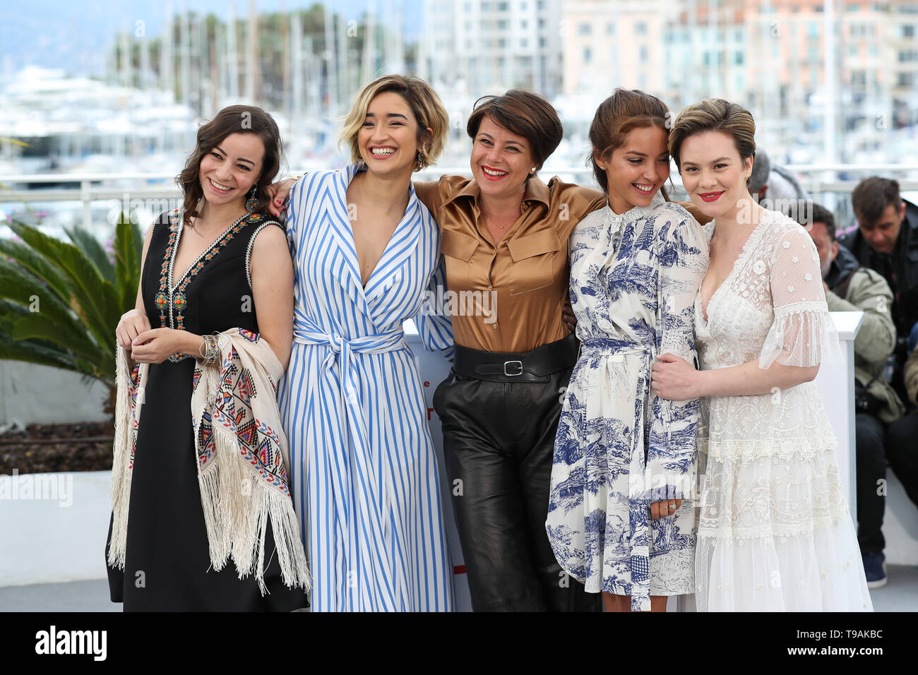 Cannes France 17th May 2019 L R Actress Amira Hilda Douaouda Actress Shirine Boutella Director Mounia Meddour Actress Lyna Khoudri And Actress Zahra Doumandji Pose During A Photocall For The Film Papicha Screened In